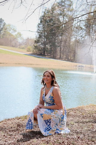 Cotton Poplin Multi Floral Printed Tie Shoulder Maxi
