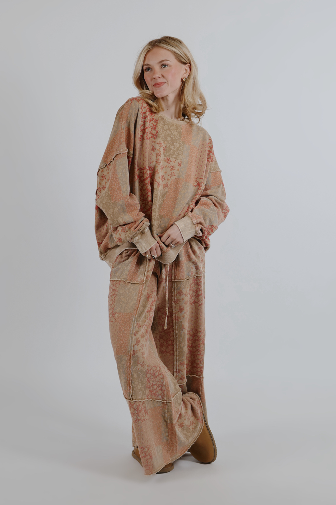 The Soft Bloom Patchwork Pullover is the perfect blend of cozy comfort and fresh seasonal style. Designed to transition effortlessly from winter into spring, this mineral-washed cotton terry pullover features a soft floral patchwork design that feels light, lived-in, and beautifully relaxed.
