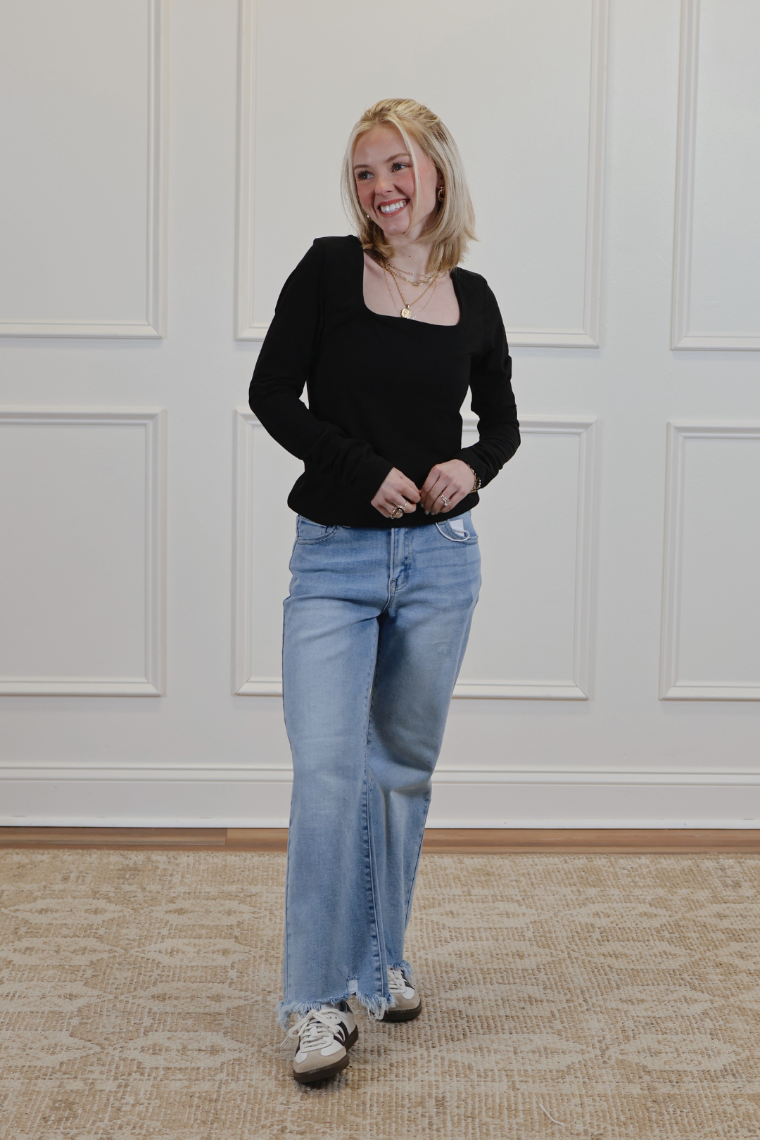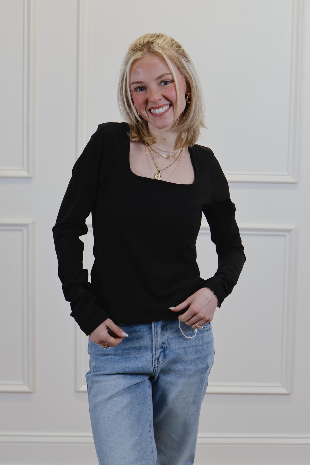 Square neckline at front and back