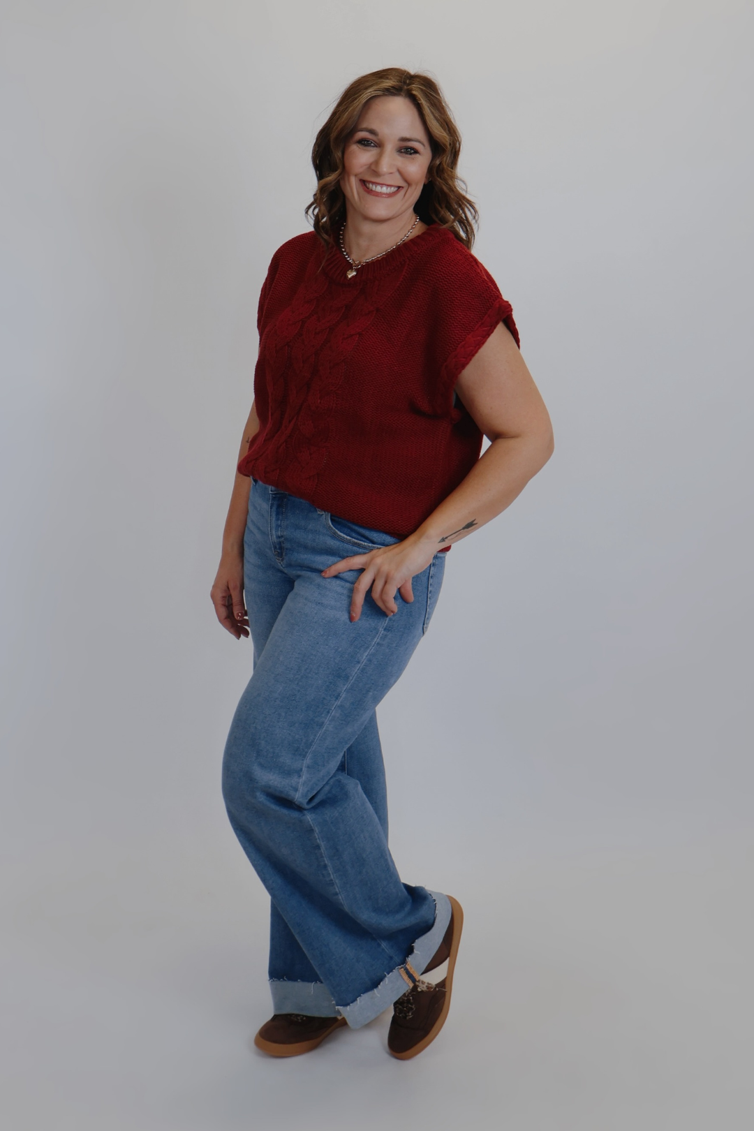 Effortless layering meets timeless texture with our Autumn Luxe Cable Sweater. Designed with a chunky cable knit pattern, this cozy yet stylish piece features a wide crew neckline and a relaxed, boxy silhouette for a modern touch. Perfect for transitioning seasons, it can be worn on its own with shorts or layered over long sleeves for a chic fall-ready look.