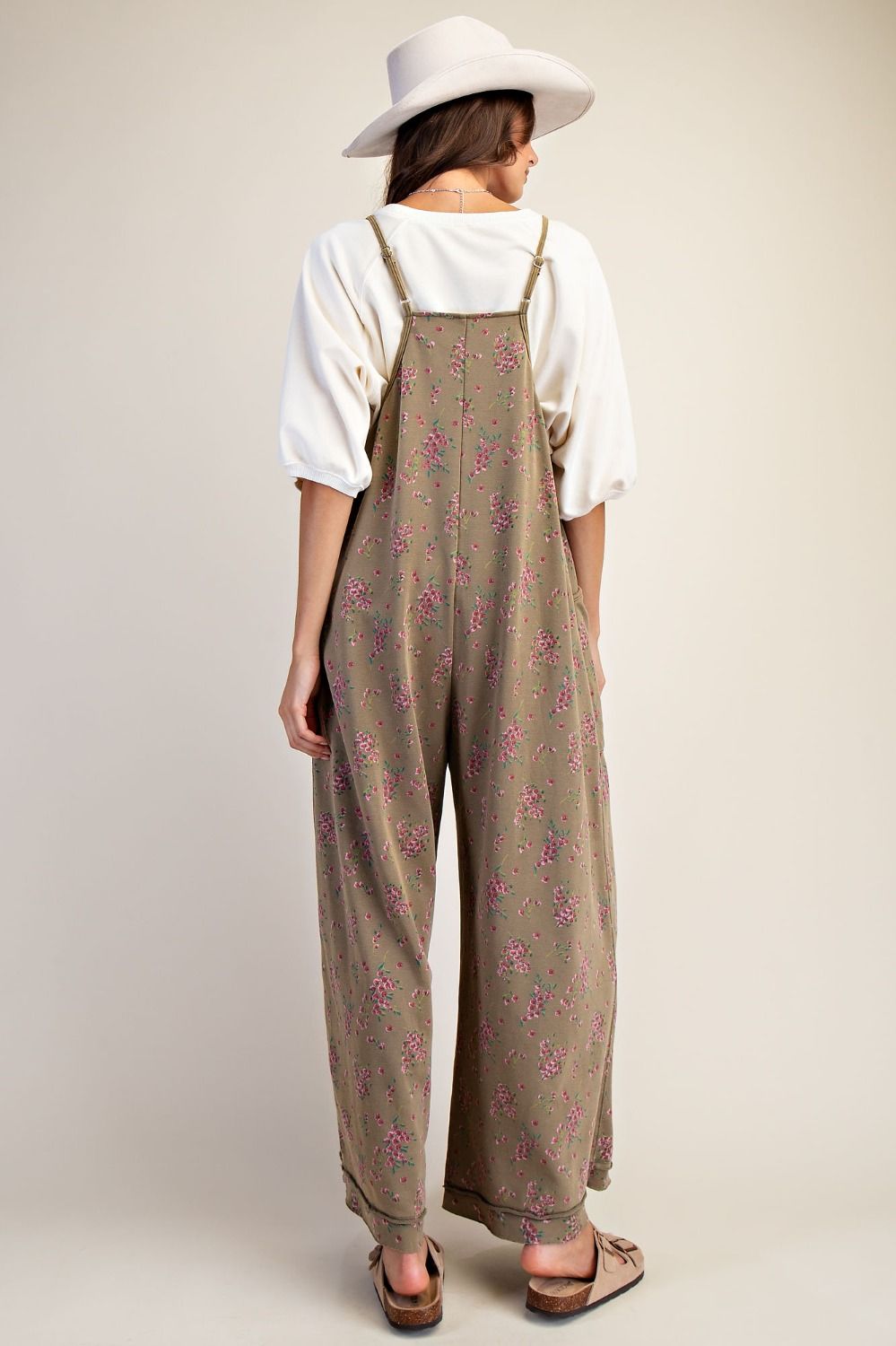 The Prairie Petals Terry Jumper brings effortless boho comfort to your everyday wardrobe. Designed in a soft, mineral-washed terry knit, this sleeveless jumpsuit features adjustable spaghetti straps, a relaxed wide-leg silhouette, and a romantic floral print throughout. Its lightweight, drapey fabric moves beautifully and offers all-day ease, while the side pockets add the perfect blend of function and laid-back charm. Pair it with simple sandals, a tee layered underneath, or a cozy cardigan for year-round styling.