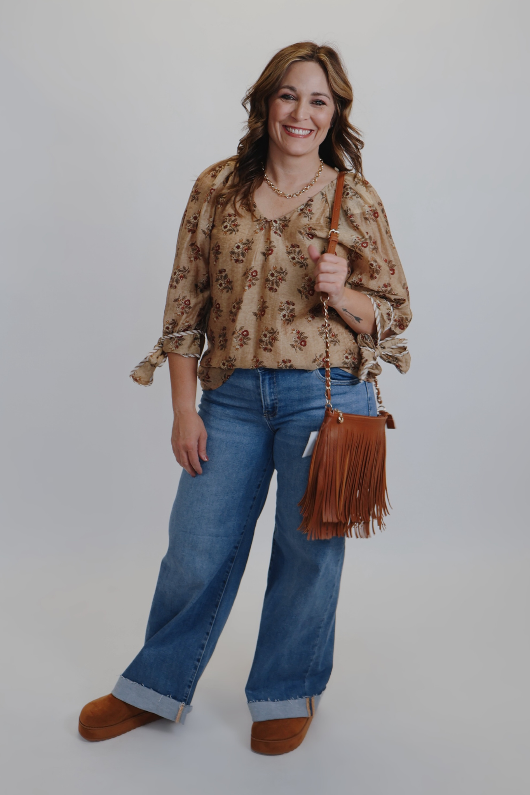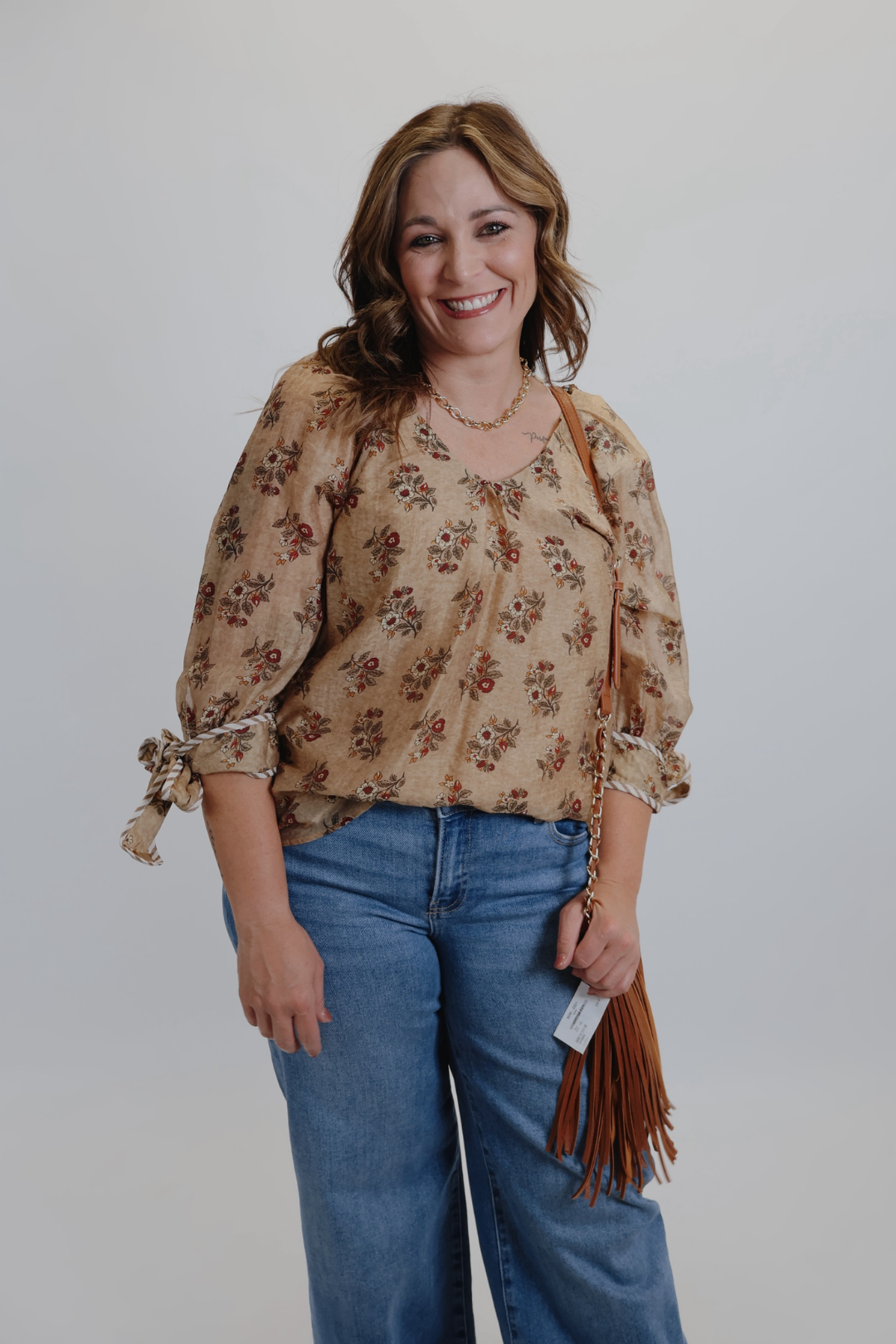 Feminine and effortlessly chic, our Harvest Meadow Top is the perfect piece to elevate your everyday look. Designed with a charming floral print, this lightweight woven blouse features 3/4 sleeves with contrast trim self-tie cuffs, a flattering V-neckline, and a delicate button closure at the back. Fully lined for comfort, it’s a breathable, non-sheer style you can wear from workdays to weekends with ease.