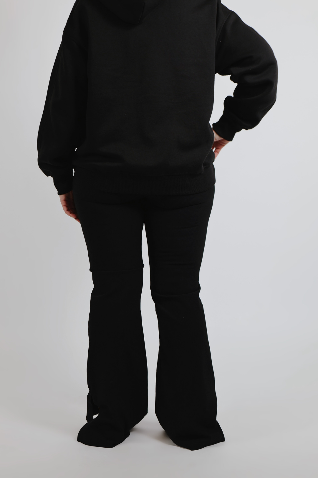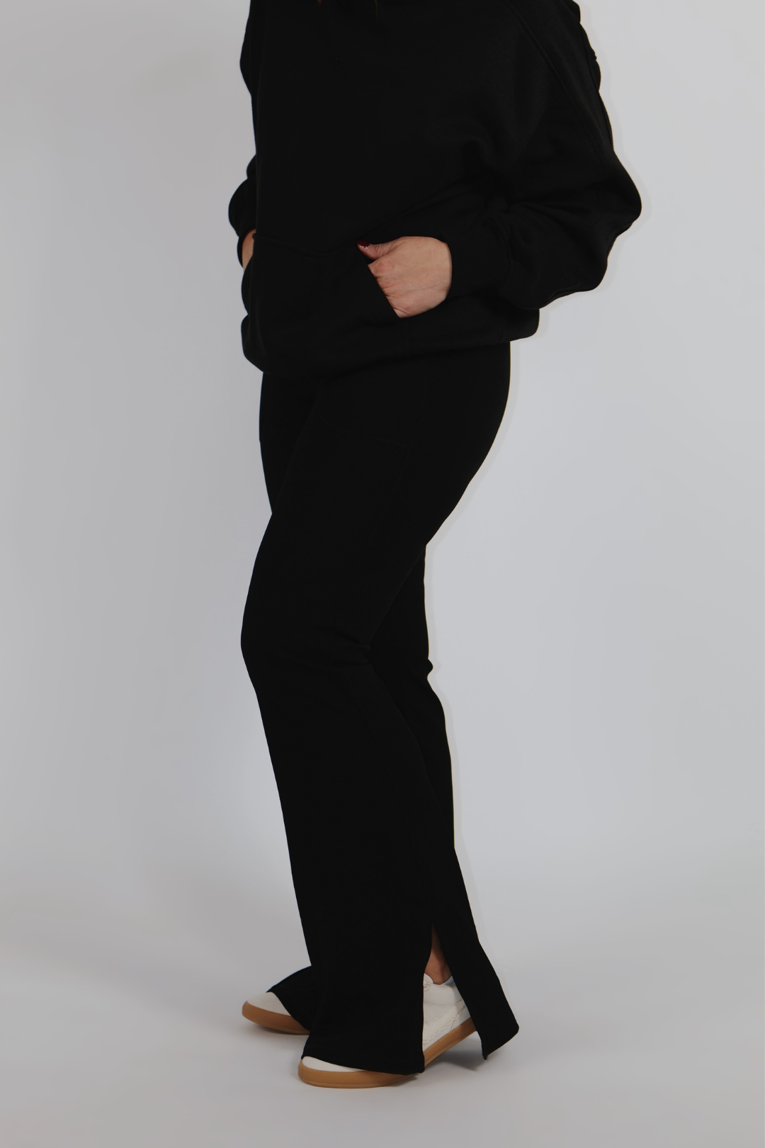 Step into comfort and sleek style with our Luxe Rib Crossover Flare Pants. Designed in a butter-smooth nylon rib fabric, these pants feature a flattering V-waist crossover front that enhances your shape while offering maximum comfort. The flared bell-bottom silhouette and subtle side-slit hem add a modern, elongating touch — perfect for workouts, errands, or casual everyday wear.