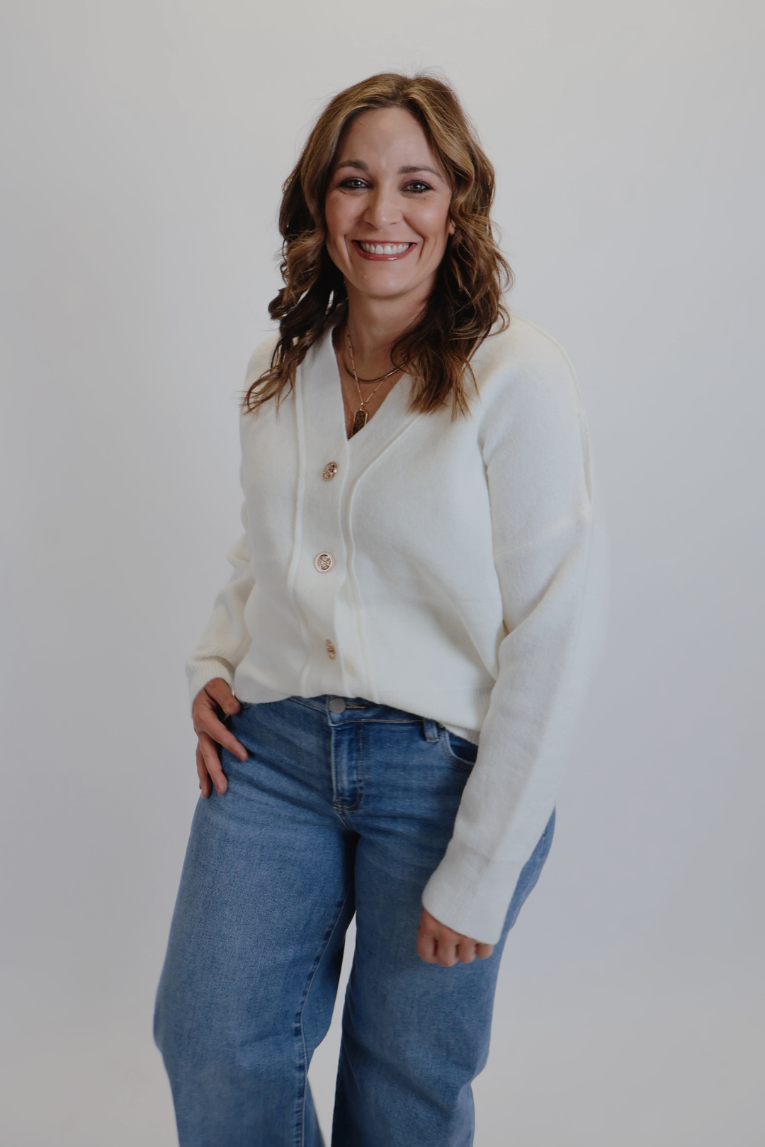 Say hello to effortless layering with the Camden Knit Cardigan — a cozy essential you’ll reach for season after season. Designed with a flattering V-neckline and classic button-front closure, this cardigan features a relaxed fit and slightly oversized silhouette that drapes just right.