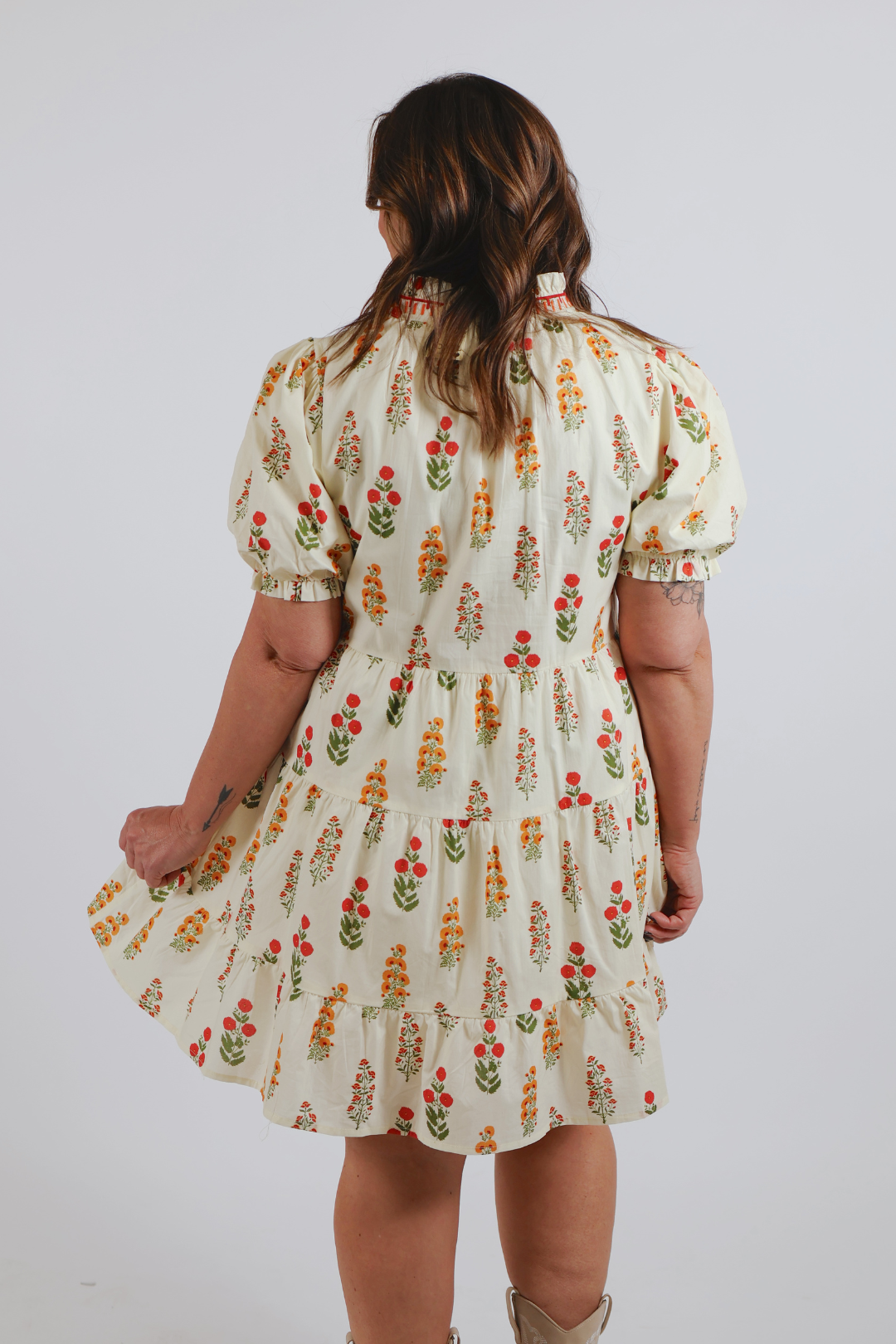 Style the Cottage Charm Tiered Dress with sandals or flats for an effortless daytime look, or dress it up with wedges and statement earrings for brunch or special occasions. Add a denim jacket or light cardigan for cooler evenings.