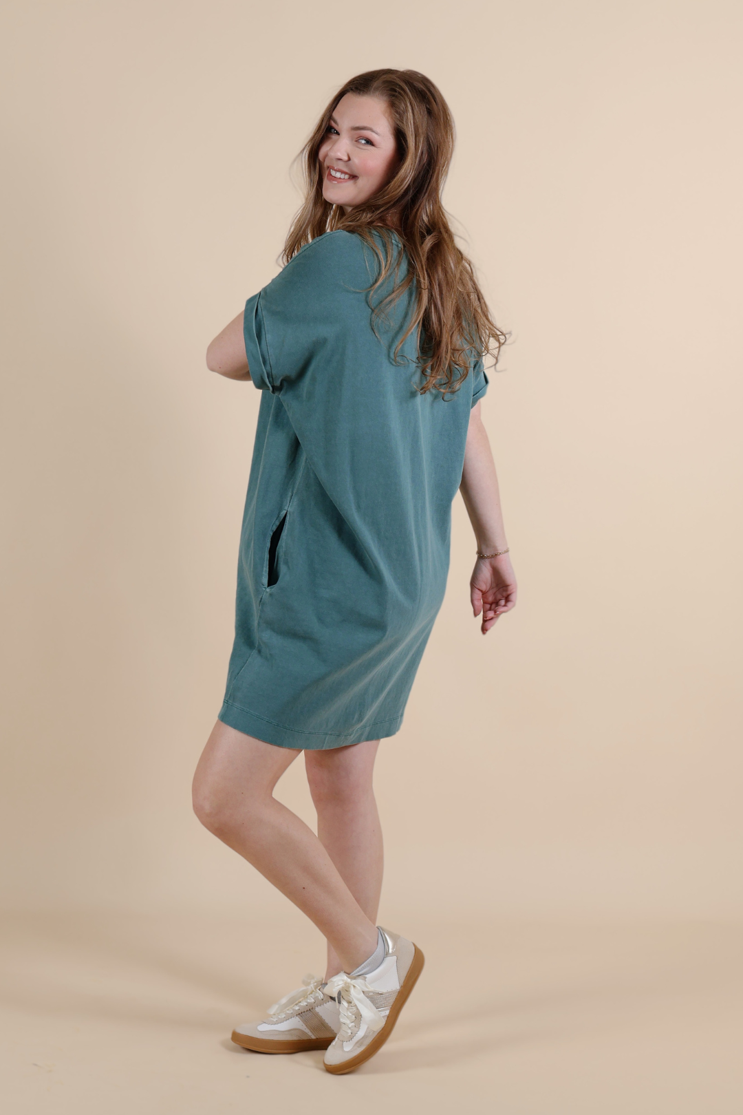 Casual, comfortable, and effortlessly cool — the Evergreen Ease Pocket Tee Dress is the throw-on-and-go staple your closet needs. Designed in soft 100% cotton with a pigment-dyed finish, this relaxed mini dress has that perfectly lived-in look and feel.