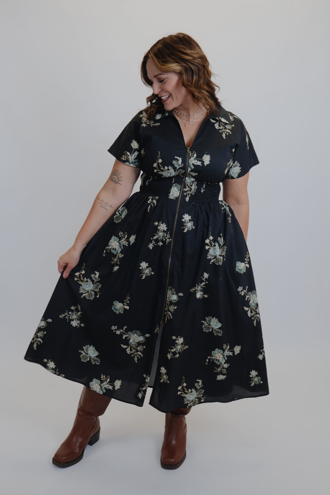 Effortless elegance meets everyday comfort in our Paisley Print Short Sleeve Dress. Designed with a flattering smocked waistband and a chic full front zip closure, this piece combines structure with ease. The lightweight woven cotton fabric drapes beautifully while keeping you cool and comfortable. Thoughtful details like side pockets and a soft lining add both function and polish, making it the perfect dress for both casual outings and elevated occasions.