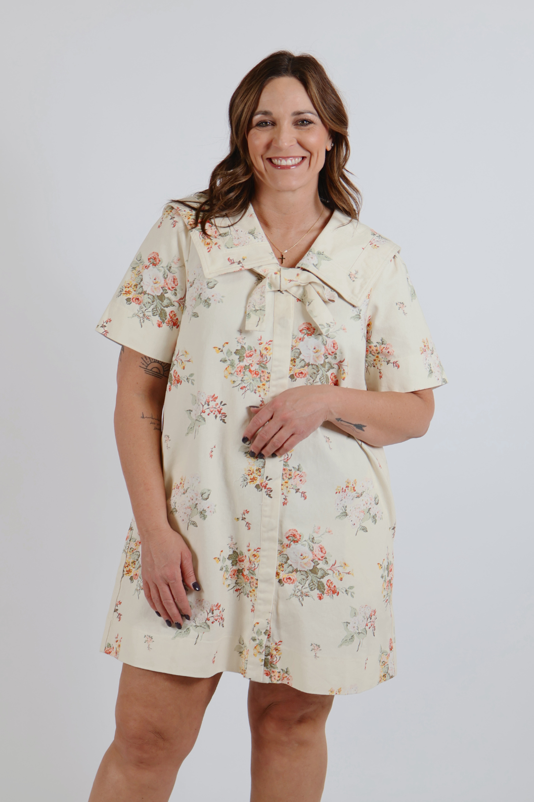 Sweet with a touch of unexpected charm, the Petals & Denim Bow Mini Dress blends soft florals with casual-cool details. Designed in a relaxed mini silhouette, this dress features a delicate floral print, short sleeves, and a feminine bow accent at the neckline. The standout detail is the denim pocket accent, adding a subtle contrast that gives this piece a modern boutique twist. Easy to wear and effortlessly flattering, it’s perfect for everyday outings, brunch dates, or casual gatherings.