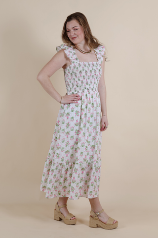 Cotton Poplin Multi Floral Printed Tie Shoulder Maxi