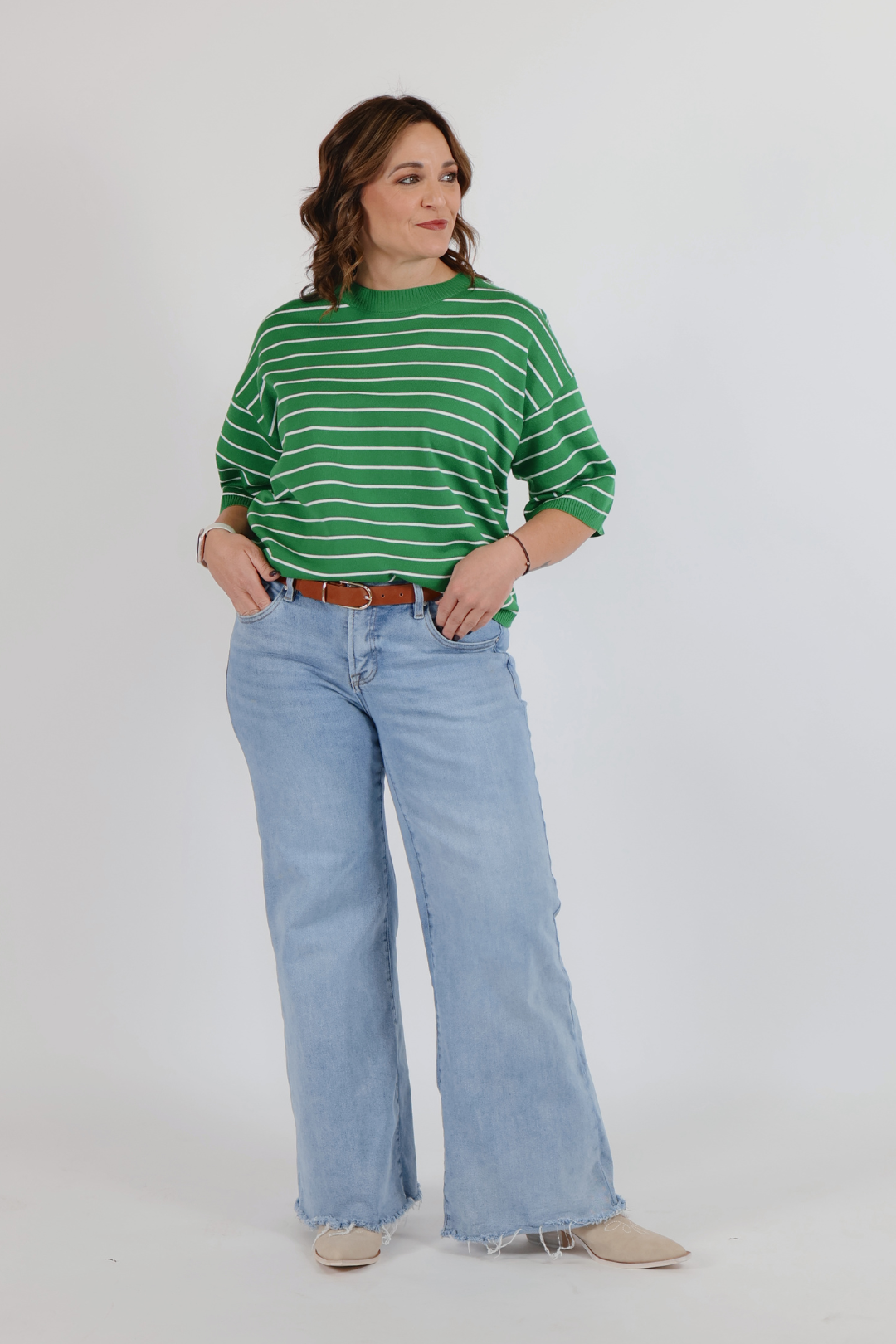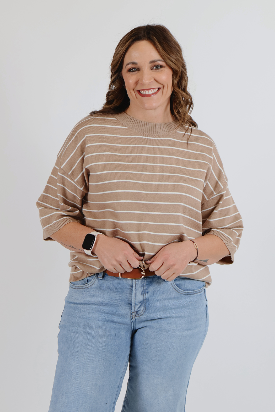 A relaxed yet polished essential, the Fresh Start Striped Knit Top is the perfect blend of comfort and effortless style. Designed with a soft, breathable knit, it features a classic crew neckline, dropped shoulders, and loose short sleeves that drape beautifully for an easy, flattering fit.