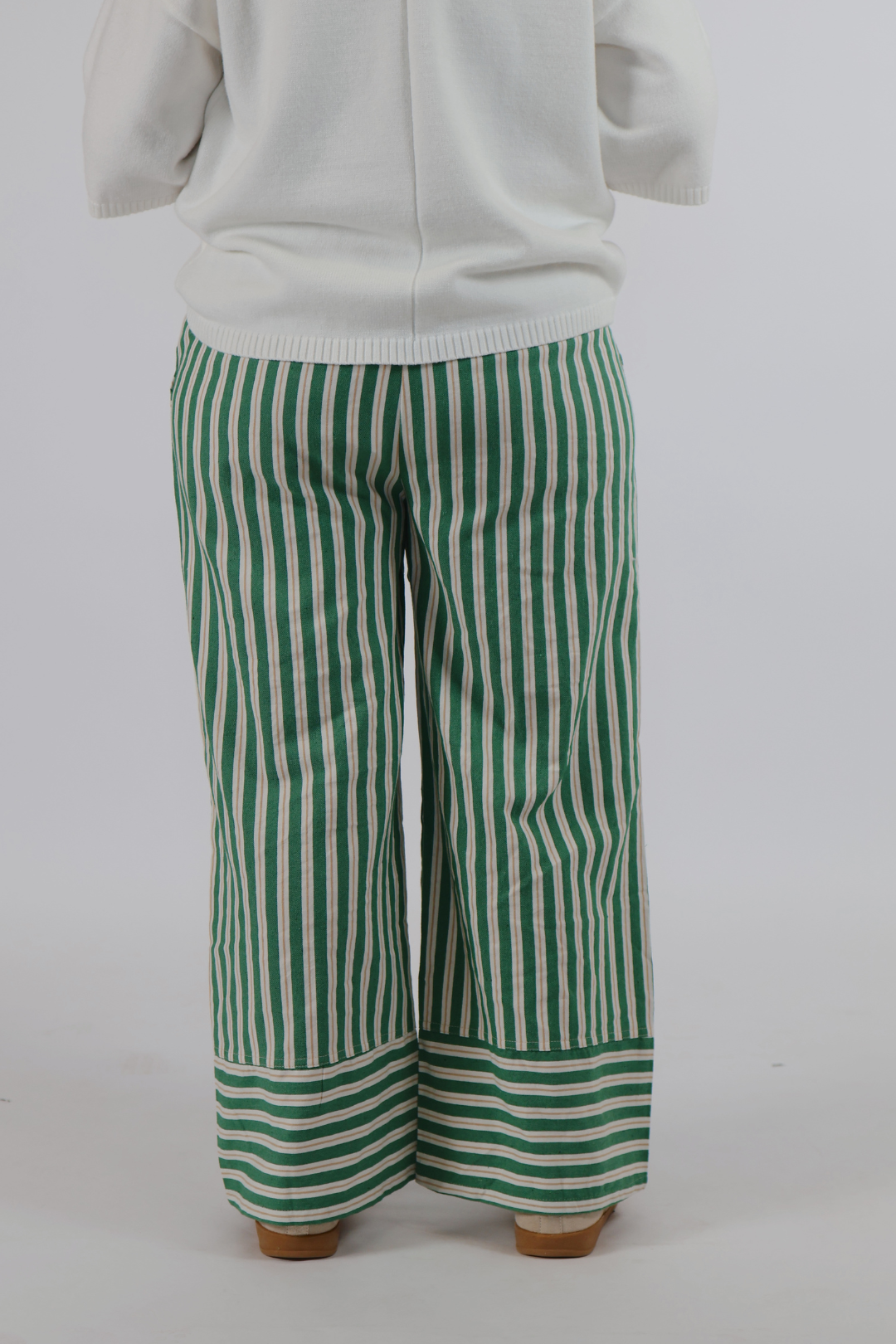 Effortlessly relaxed with a touch of modern charm, our Willow Lane Striped Wide-Leg Pants are designed for comfort and style wherever the day takes you. Featuring a flattering high-rise fit, soft breathable fabric, and an adjustable drawstring waist, these pants flow beautifully with every step. The vertical green and ivory stripes elongate the silhouette, while the wide-leg cut offers an easy, laid-back elegance.