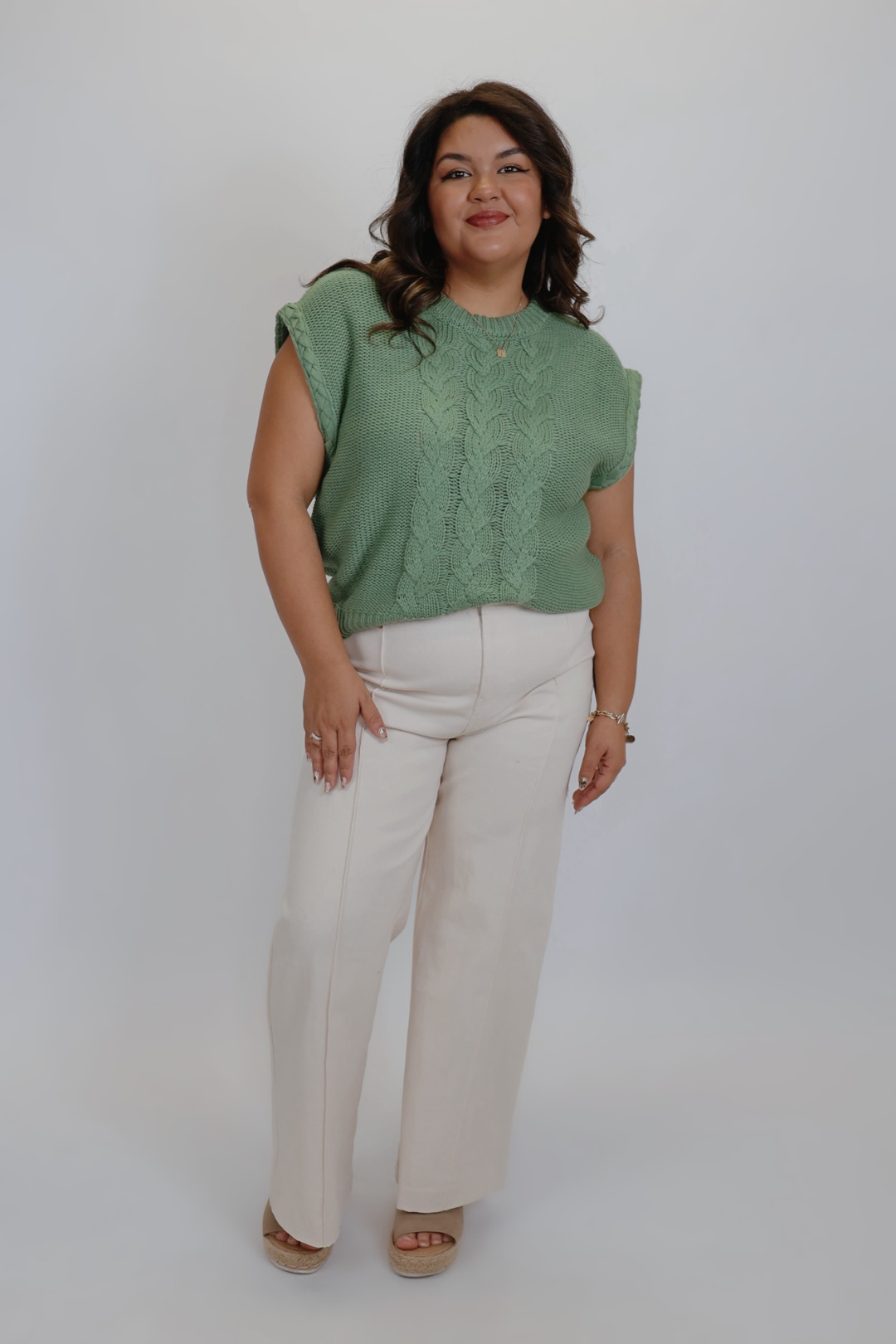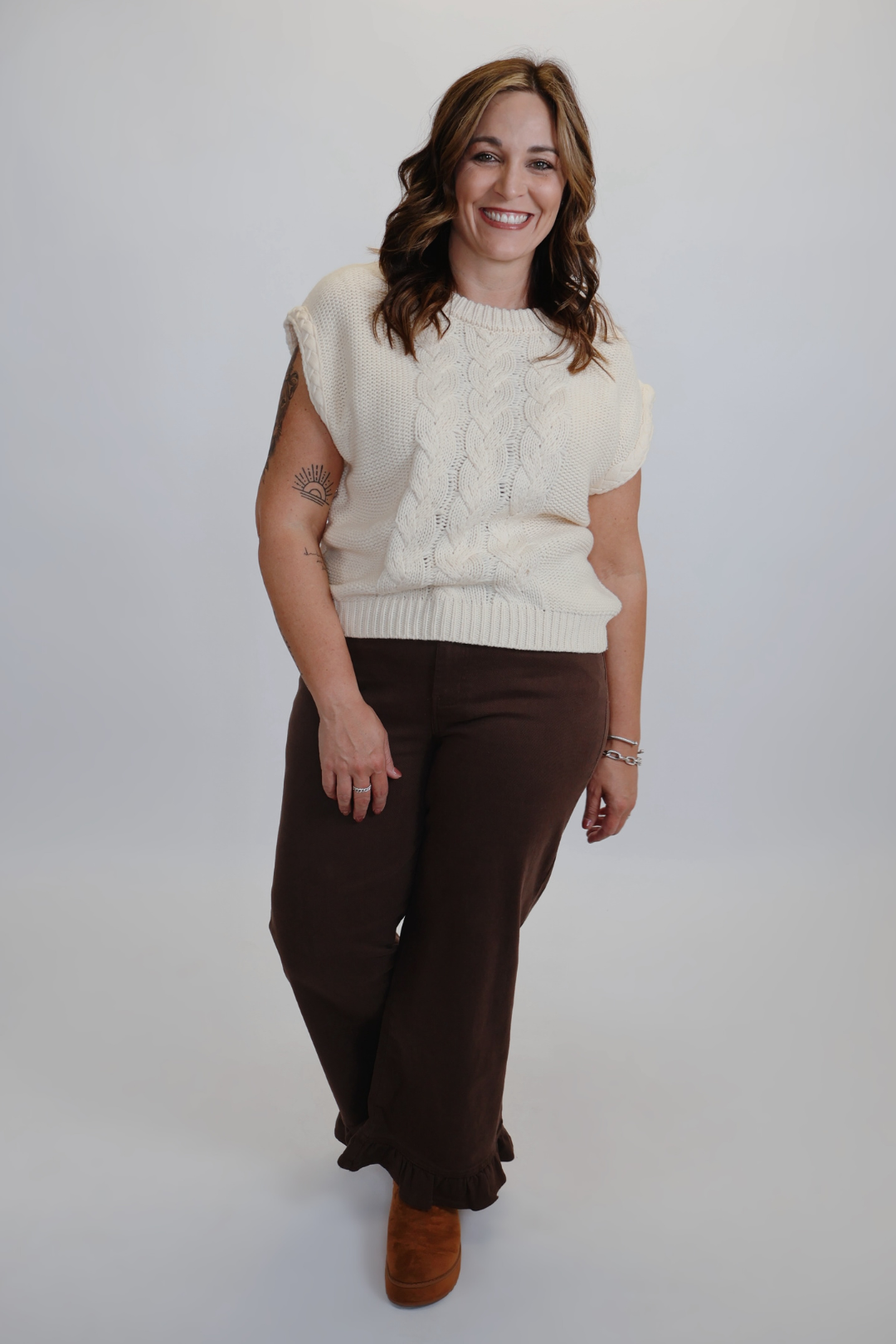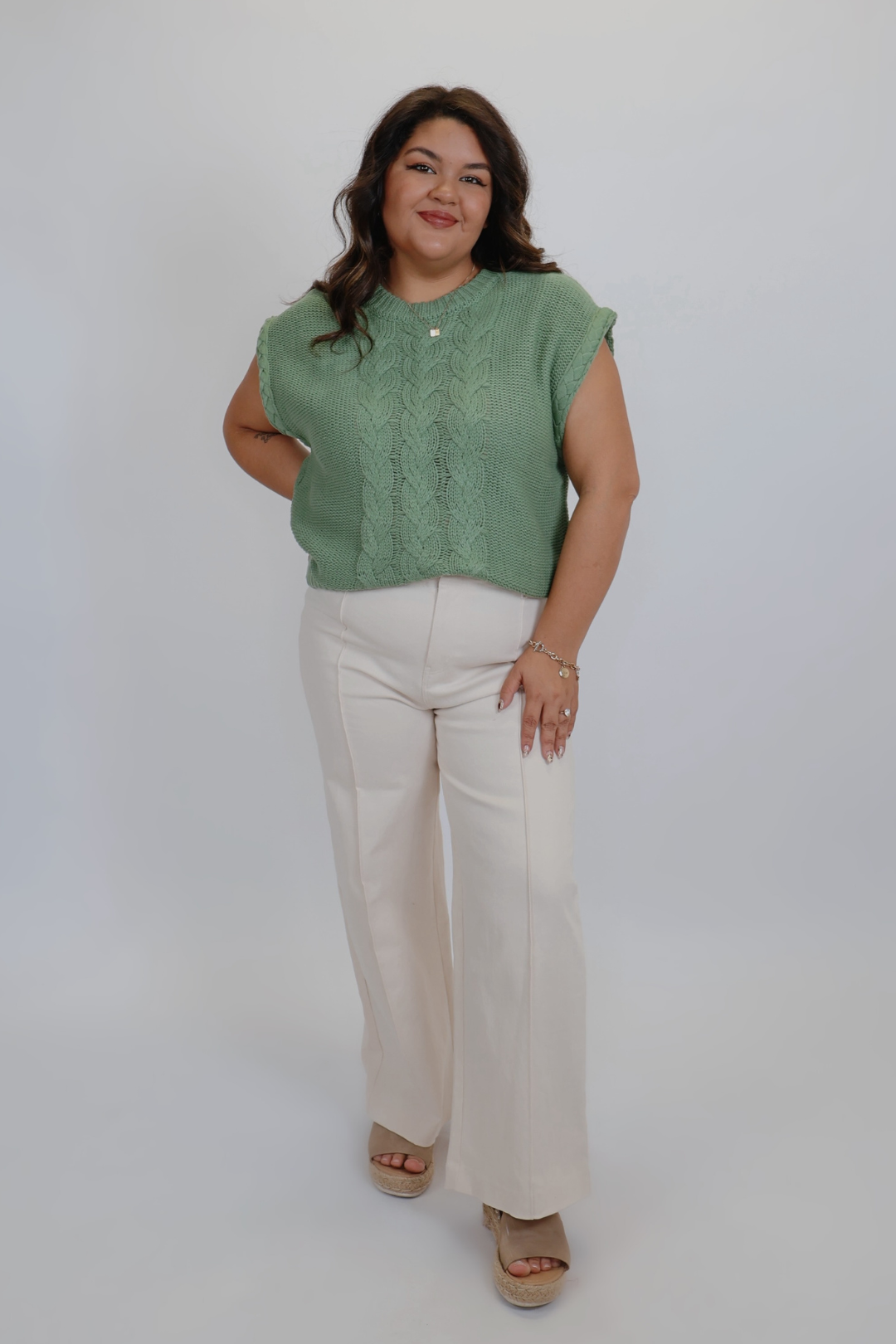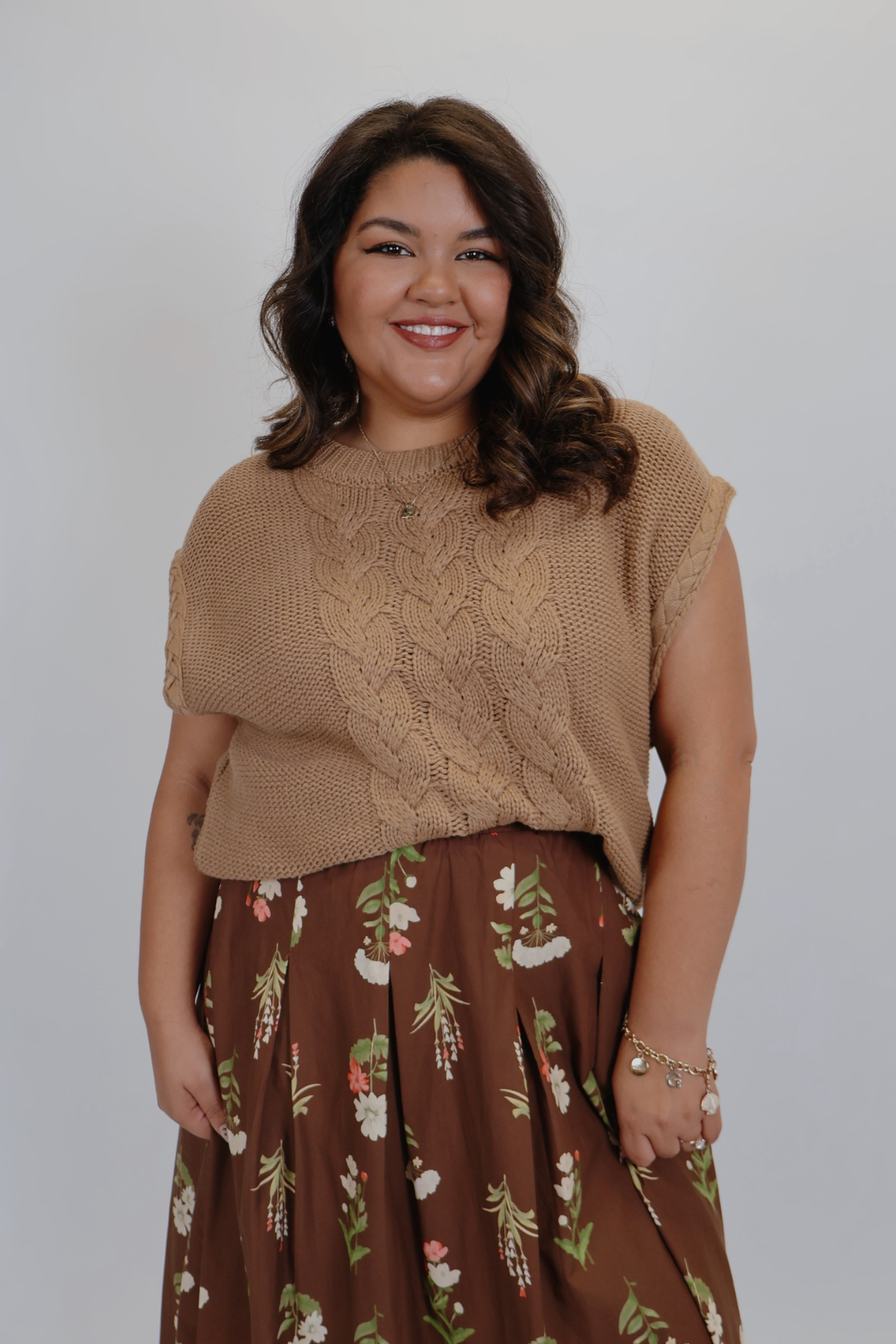 Effortless layering meets timeless texture with our Autumn Luxe Cable Sweater. Designed with a chunky cable knit pattern, this cozy yet stylish piece features a wide crew neckline and a relaxed, boxy silhouette for a modern touch. Perfect for transitioning seasons, it can be worn on its own with shorts or layered over long sleeves for a chic fall-ready look.