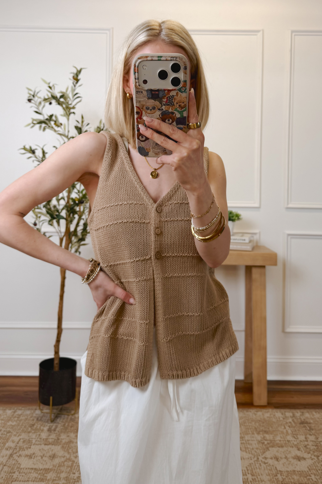 The button-front closure and subtle split hem add shape and movement, making it easy to style open or closed. Whether you choose the soft cream or the warm tan, this versatile piece pairs beautifully with denim, skirts, or layered over a simple tank.