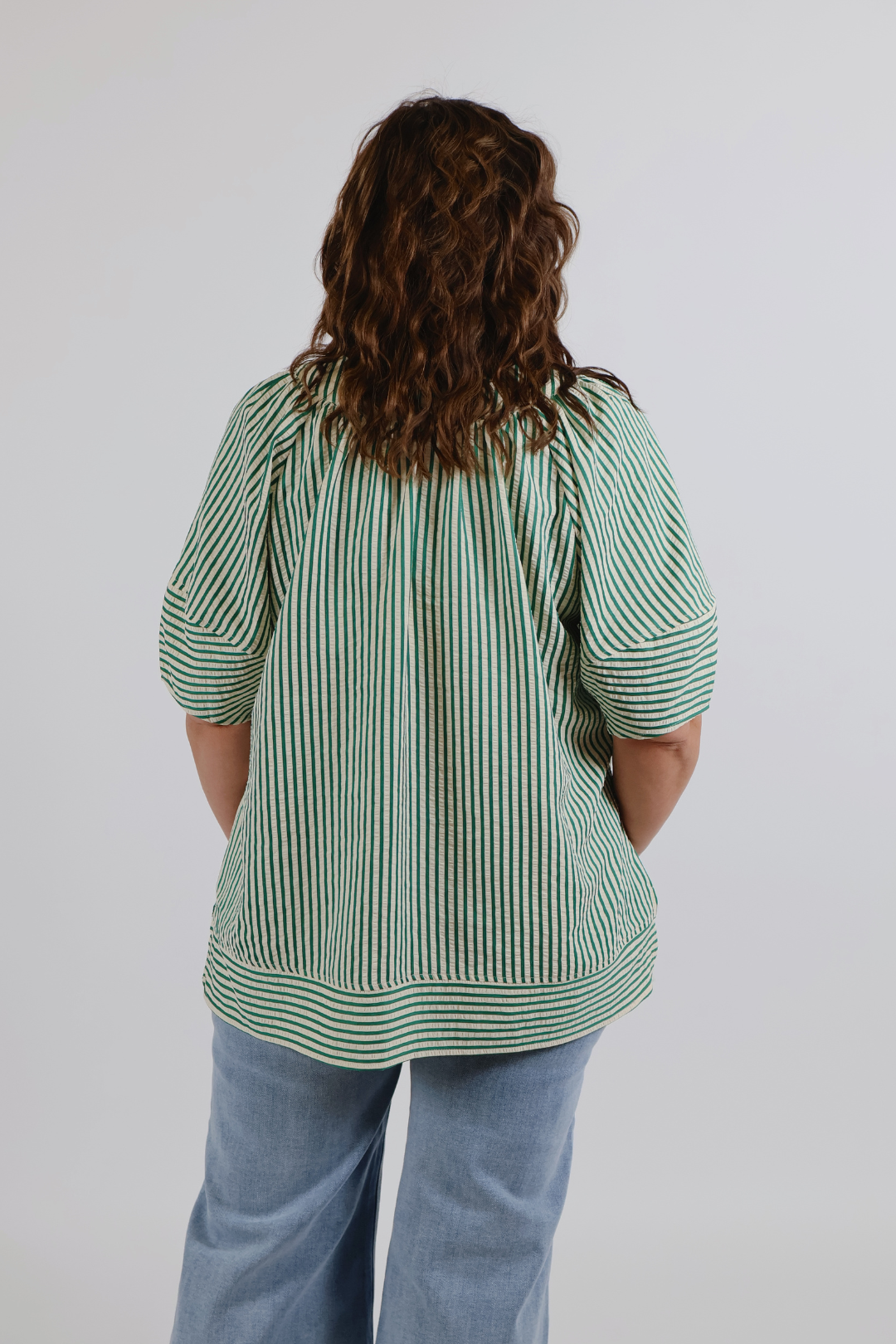 Easy, polished, and made to flatter, the Fresh Start Stripe Plus Top is a feel-good staple for everyday wear. Designed with classic vertical stripes and a flattering V-neckline, this short sleeve woven top offers a lightweight, breathable feel that’s perfect for warm days. The relaxed silhouette drapes beautifully without clinging, making it an effortless choice for dressing up or down. A timeless piece you’ll reach for again and again.