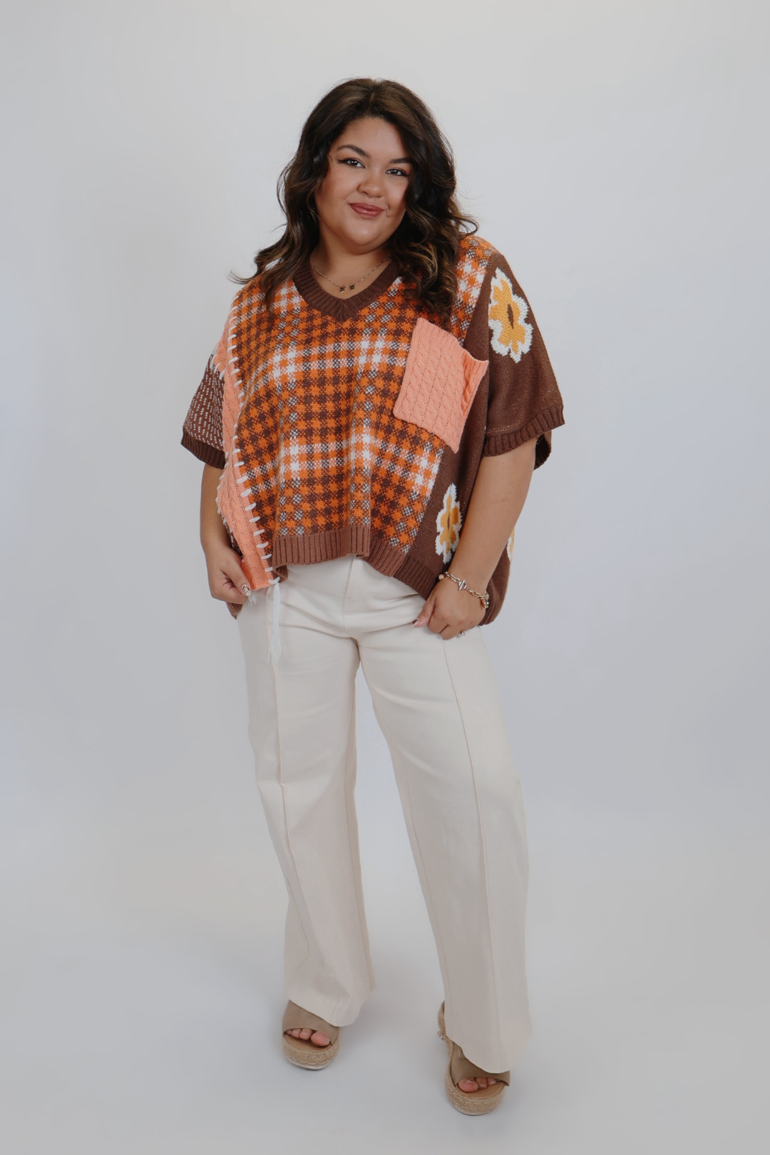 A fresh twist on timeless texture, our Garden Plaid Sweater brings cozy layers and vintage charm into one effortlessly cool piece. Crafted in a unique blend of pointed plaid and floral stitch patterns, this sleeveless top features a flattering V-neckline and an oversized silhouette for a relaxed, lived-in feel.