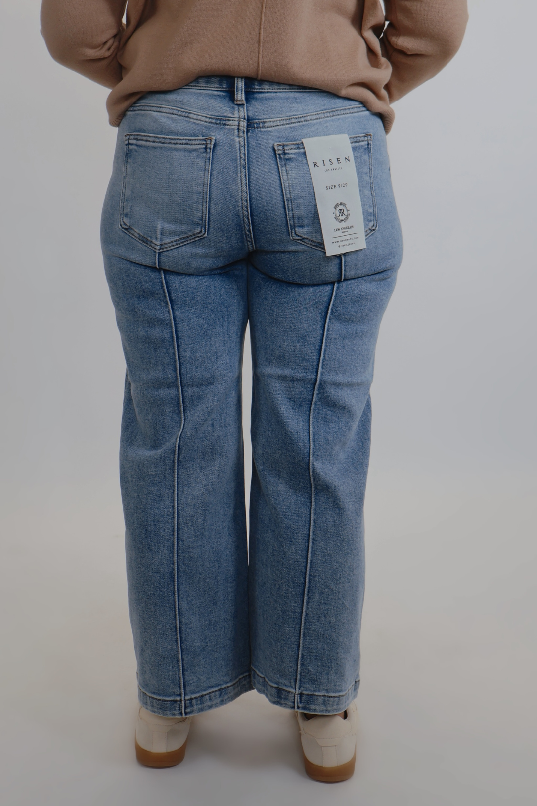 The Margo Pintuck Crop Jeans blend modern structure with laid-back ease. Designed with a flattering mid rise and a cropped wide leg, these jeans feature front and back pintuck detailing that elongates the legs and gives a polished, tailored finish.