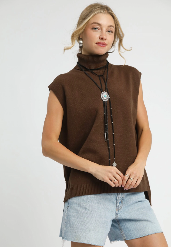 Elevate your wardrobe with the Modern Edge Knit Turtleneck Top. Designed with a sleek turtle neckline and relaxed silhouette, this sleeveless knit features a chic hi-lo hem for an effortlessly modern touch. Perfect for layering or wearing solo, it transitions seamlessly from season to season. Pair it with denim, skirts, or tailored bottoms for a versatile look that’s both polished and comfortable.