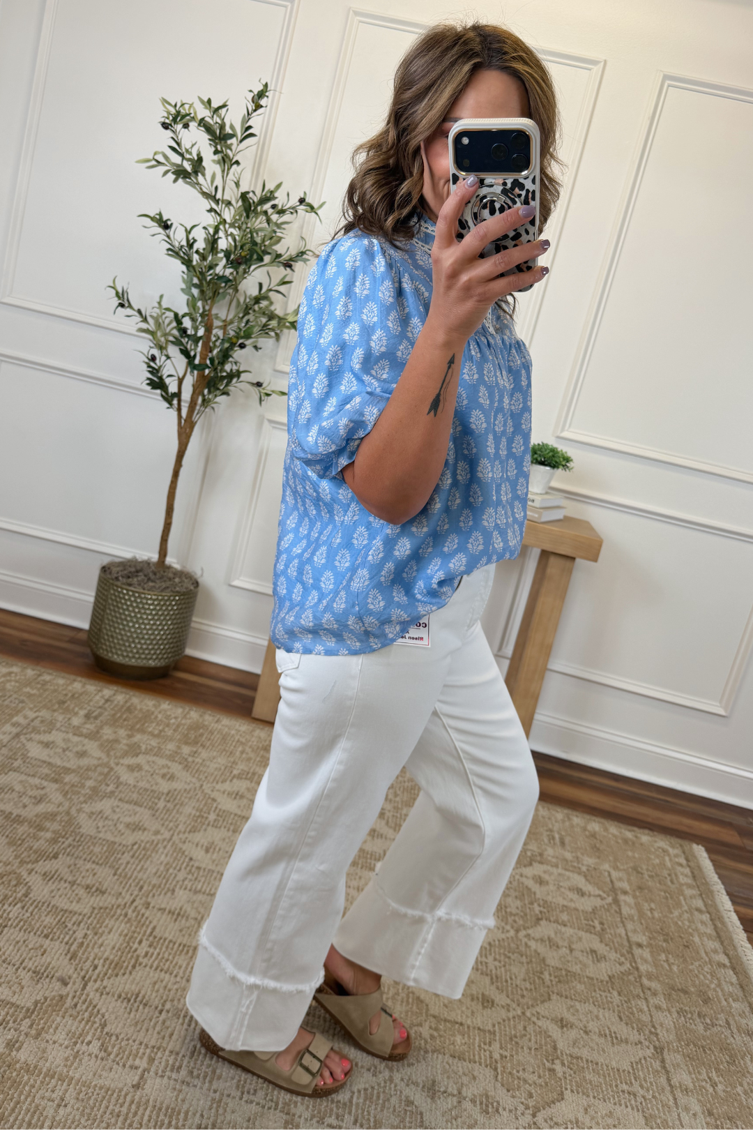 Fully lined for coverage and ease, this lightweight top is breathable and easy to wear throughout the season. The Soft Meadow Printed Top pairs beautifully with white denim, light-wash jeans, or tailored shorts for a polished yet relaxed look that transitions seamlessly from weekday outings to weekend plans.