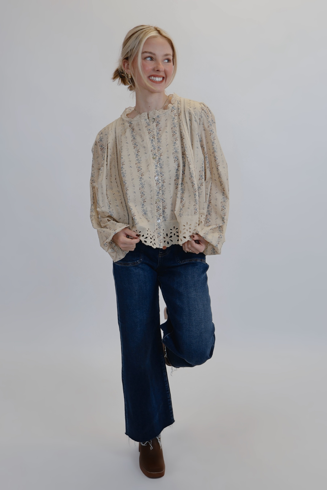 Introducing the Buttercream Bloom Top —a charming blend of vintage sweetness and modern comfort. This beautifully crafted top features soft, billowy sleeves and a relaxed silhouette that creates an effortlessly feminine look. Its delicate floral print adds a romantic touch, while the scalloped daisy-inspired eyelet hem brings a unique and playful finish to the design.