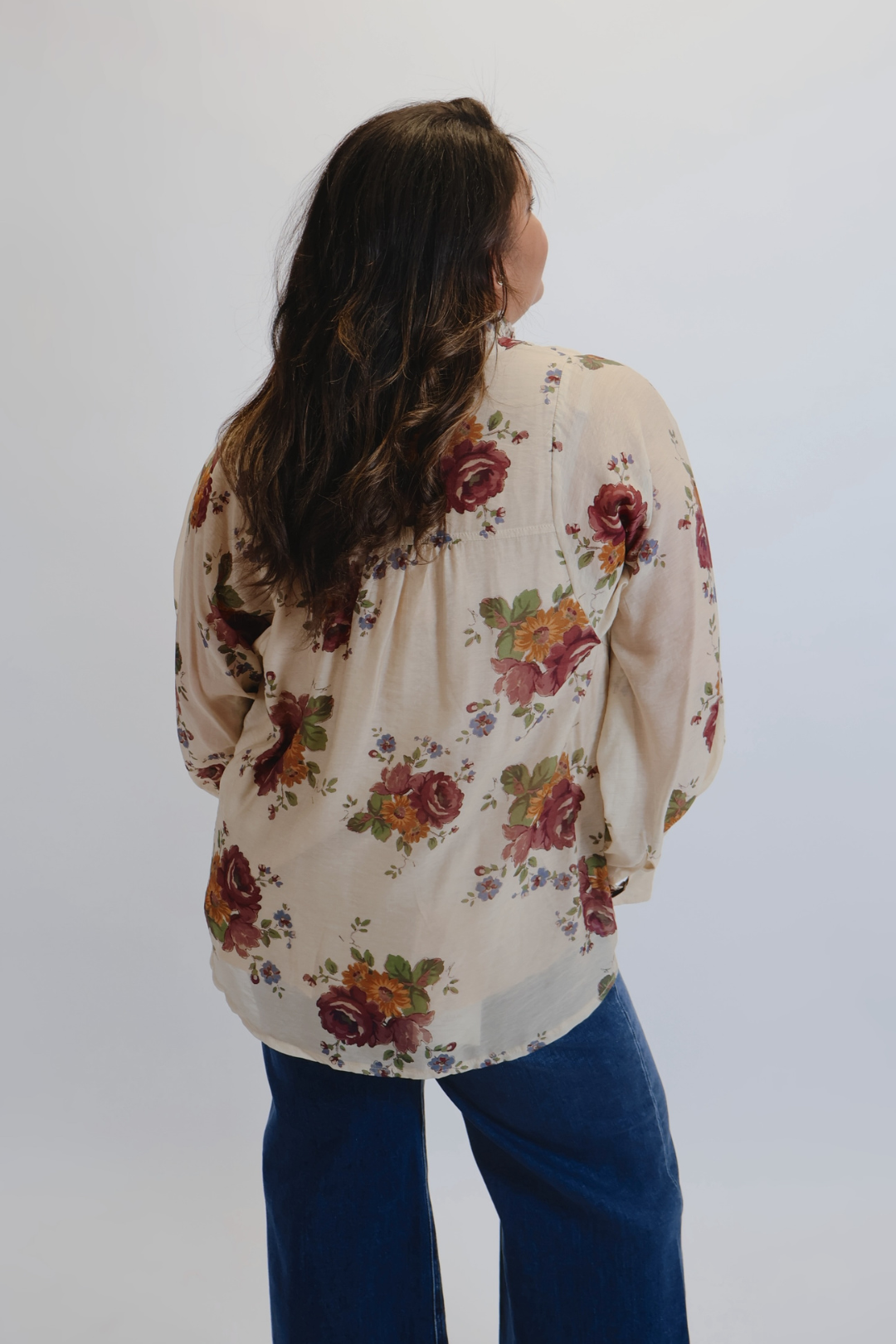 Romantic and effortlessly feminine, the adds a touch of elegance to your everyday style. This floral print top features long puff sleeves, a soft ruffled band collar, and a flattering V-neckline with button-front closure. Crafted from a lightweight woven Tencel blend, it drapes beautifully while keeping you comfortable all day long.