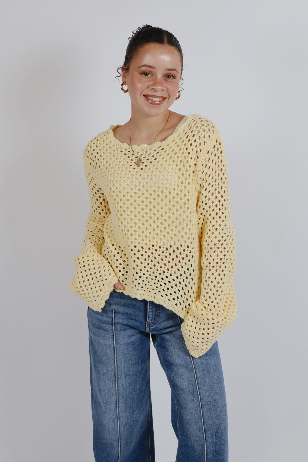 Light, airy, and effortlessly feminine, the Soft Horizon Crochet Pullover is the perfect layering piece for warm days and breezy evenings. Designed with a breathable open-knit crochet texture, this pullover features delicate scallop trim along the neckline and cuffs for a soft, romantic finish. Relaxed long sleeves and a slightly cropped, boxy fit create an easy, flattering silhouette that feels both modern and timeless.