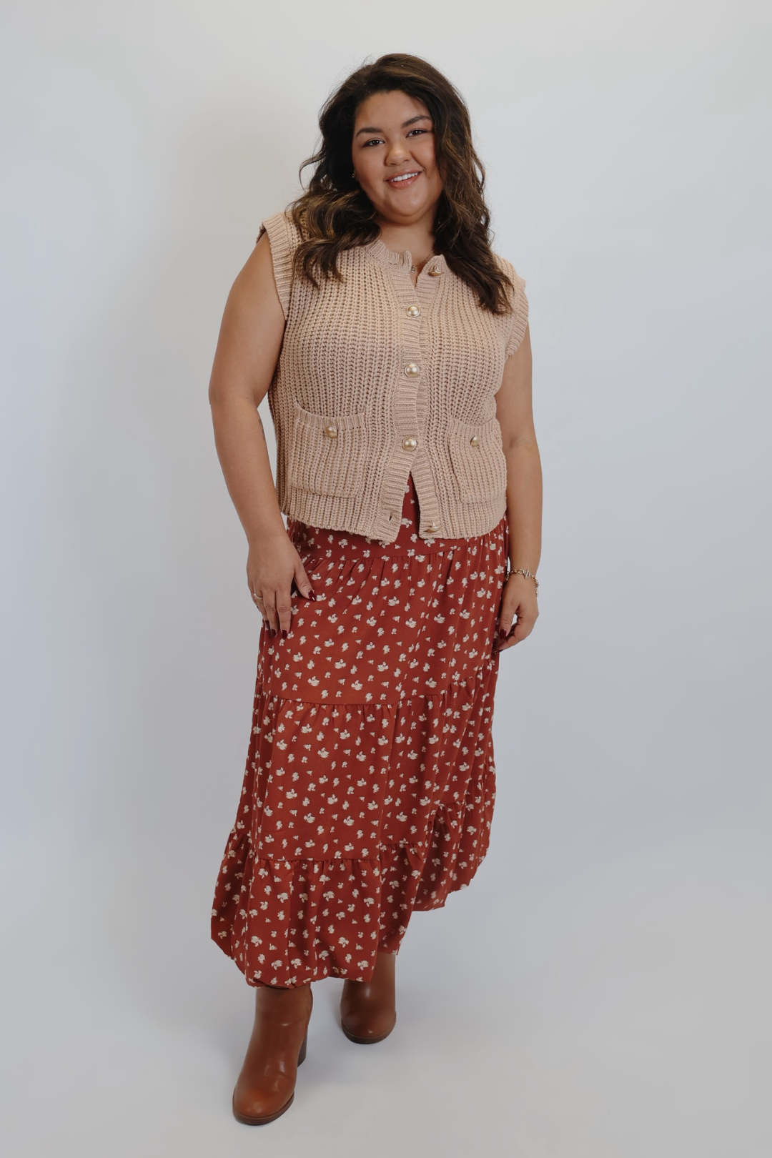 Timeless meets trendy in the Vintage Charm Sweater Vest. This soft, chunky knit vest features a sleeveless silhouette and antique gold button-down front for a touch of retro sophistication. With its cozy cotton-blend texture and versatile style, it’s perfect for layering over blouses, turtlenecks, or dresses as the seasons change.
