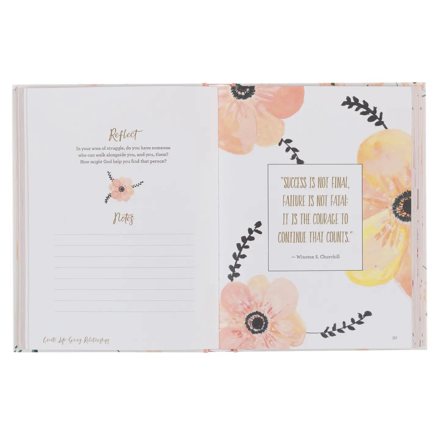 The elegant hardcover features a creamy peach background, soft peachy-pink florals, and a stunning rose gold foil title, making it as lovely to display as it is uplifting to read. Inside, each turn of the page reveals a full-color interior, a white ribbon marker, and rose-gold gilt edges that add a touch of luxury to her quiet time routine.