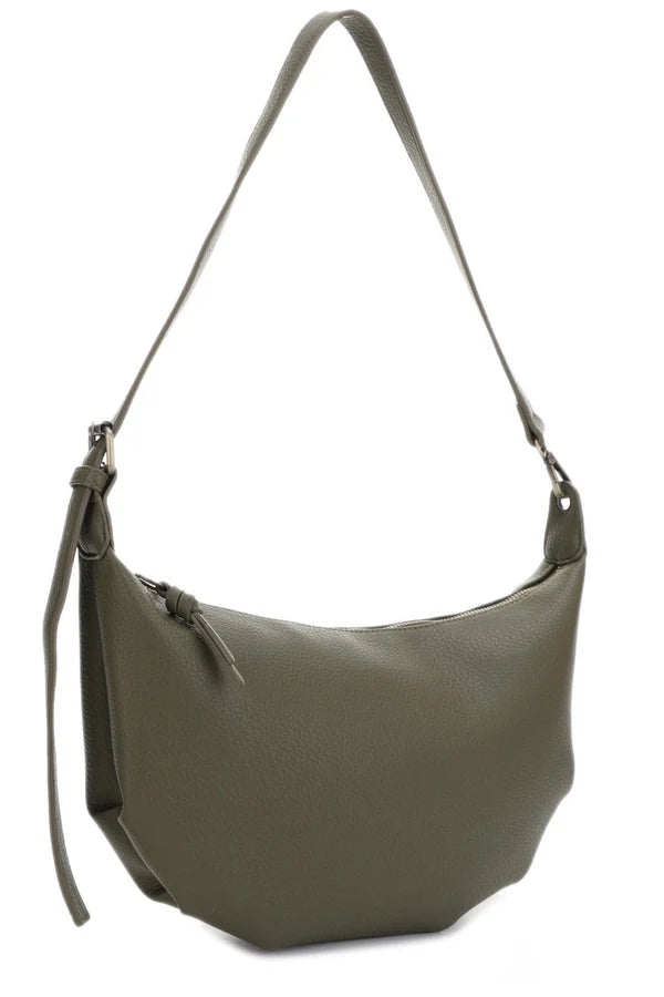 This bag is the perfect option for those looking for functionality and style. With its unique crescent shape, it can be worn as a shoulder bag or a crossbody, providing versatility and convenience. An accessory that's both practical and trendy.