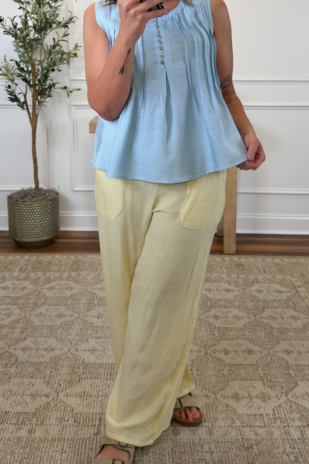 Light, airy, and effortlessly chic, the Sienna Breeze Wide Leg Pants are made for easy days and relaxed styling. Designed in a soft woven fabric, these pants feature a flowy wide leg silhouette and an elastic waistband with adjustable tie for all-day comfort. The lightweight feel and easy fit make them perfect for pairing with tanks, tees, or lightweight knits for a clean, elevated everyday look.